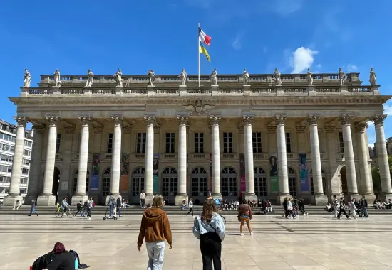 Poursuivez vers le Grand Théâtre et son imposante façade ornée de colonnes corinthiennes. Juste en face, partez pour une pause ludique avec notre jeu de piste “Le Voleur du Grand Théâtre” : une façon originale de découvrir les secrets du centre-ville tout en s’amusant.